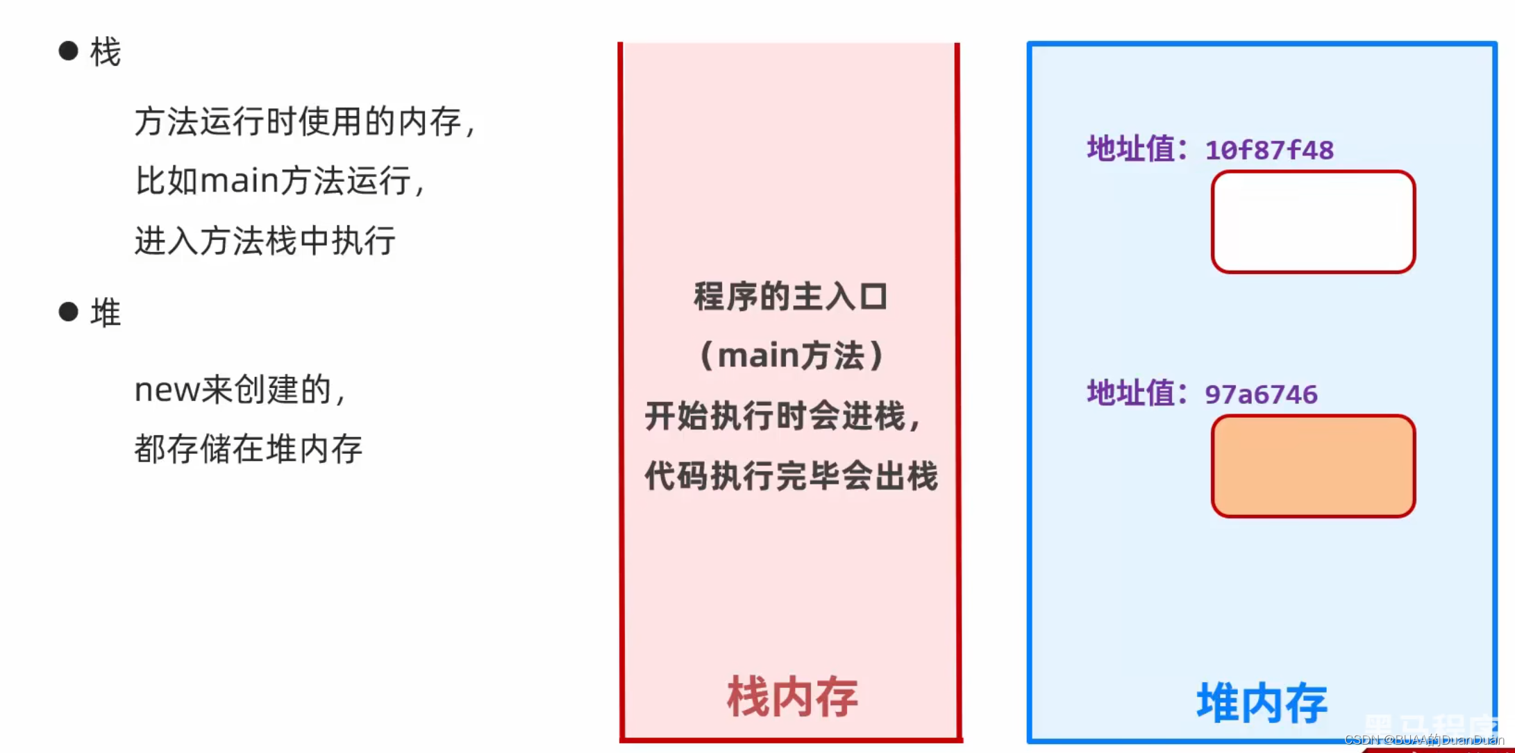 main文件在代码运行完后会出栈, new创建的(如存储对象/数组)会存储在堆内存,在堆内存中会产生地址