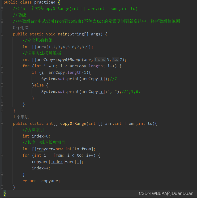 需求:定义一个方法copy0fRange(int [] arr,int from ,int to)