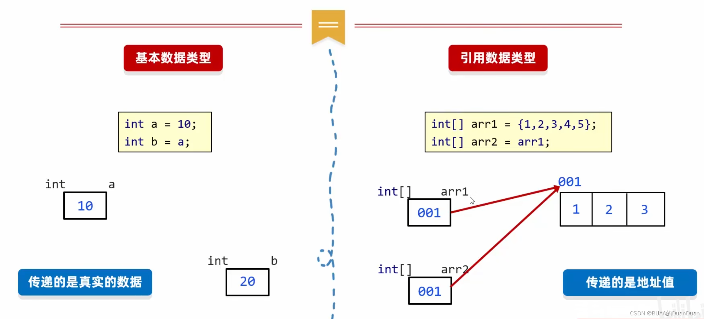 传递基本数据类型时,传递的是真实的数据,形参的改变,不影响实际参数的值。