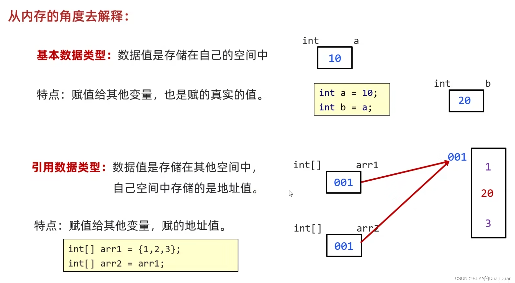 本文详细解释了Java中的内存分配机制,包括堆内存和栈内存的区别,以及数组的内存图。还介绍了方法的概念、定义、调用,包括无参、有参、带返回值的方法,并探讨了重载、参数传递、数组操作和方法调用的内存原理。