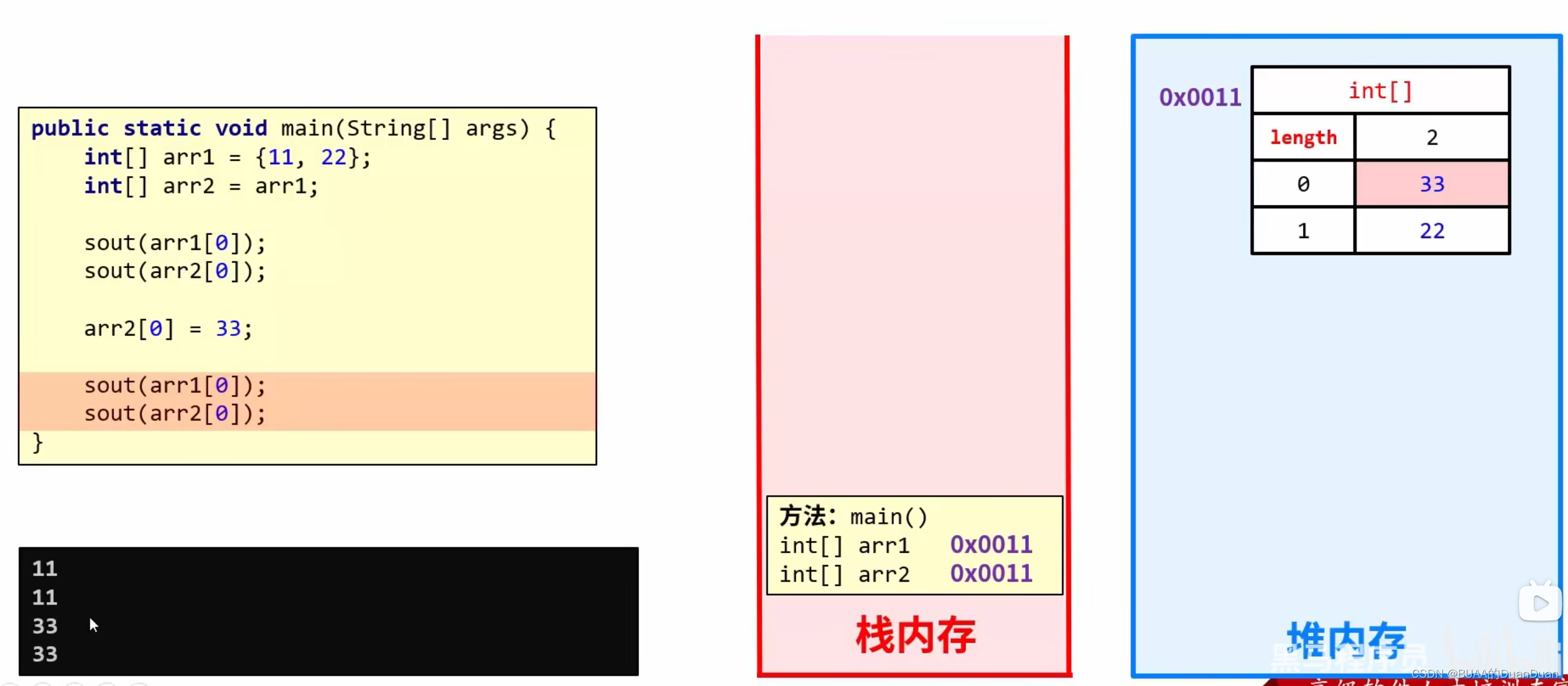 arr1与arr2是一个位置,改变其中一个索引值,两个数组都会改变。