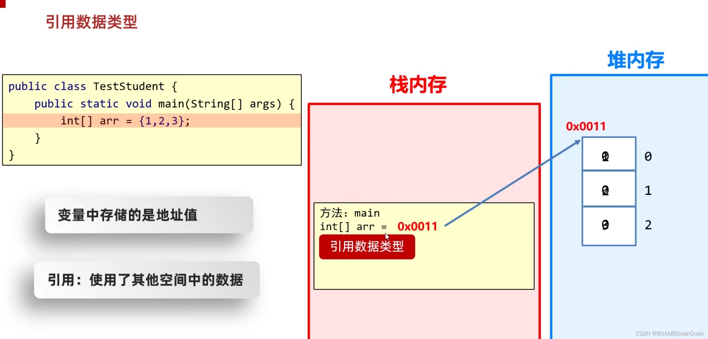 变量中存储的不是真实的数据, 而是其他空间地址值的时候,该数据位引用数据类型。