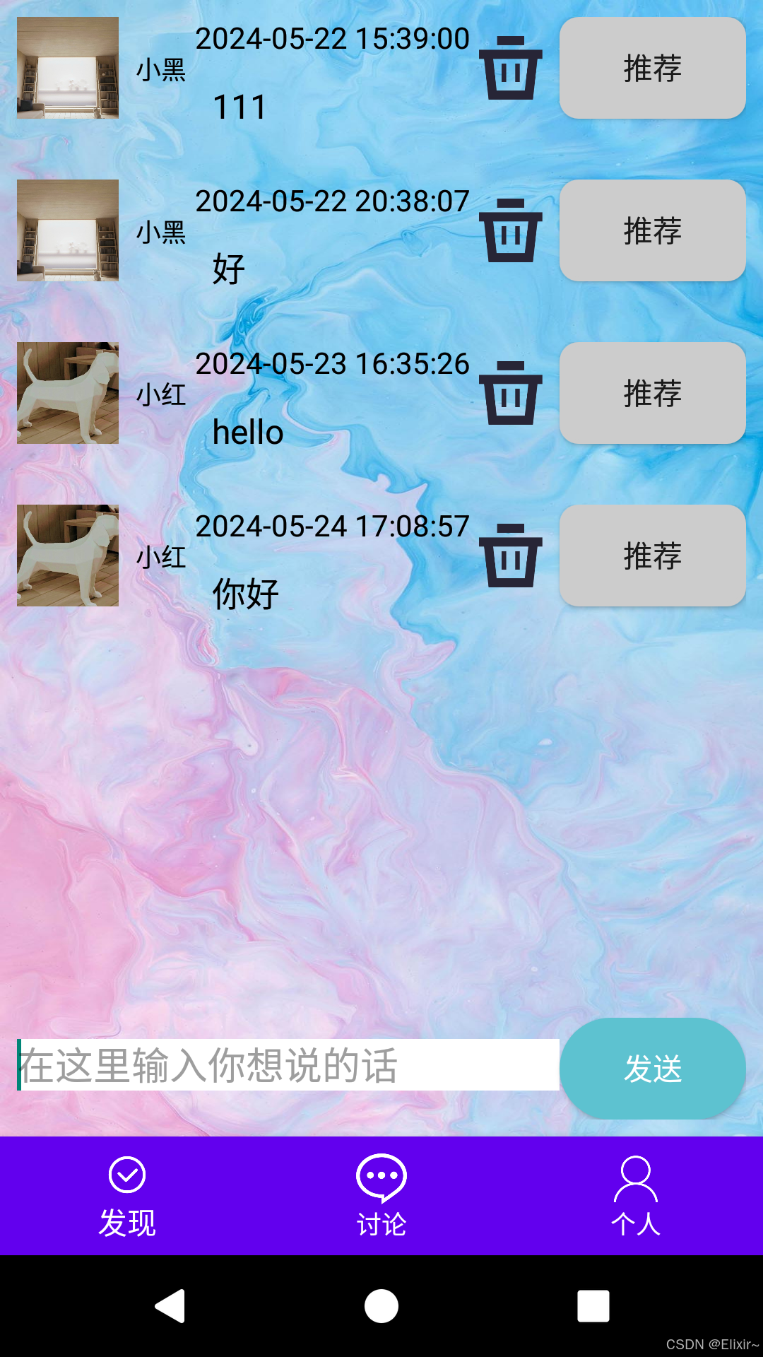 | 点击自己发布的删除按钮 | 选取的评论在列表中消失 | 与预测结果相同 |