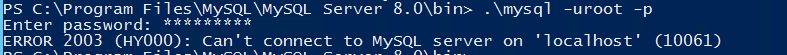 5、直到此时,在本机cmd去登mysql一直没成功,报错。