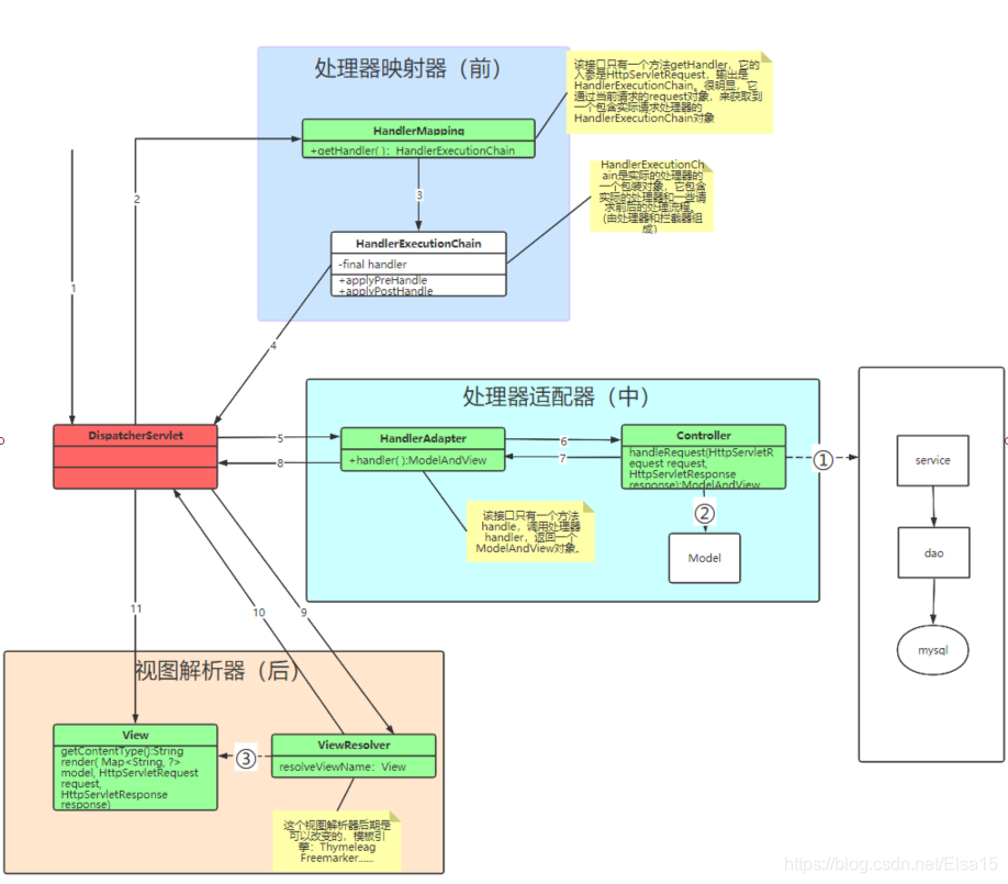 2、DispatcherServlet收到请求调用HandlerMapping处理器映射器。