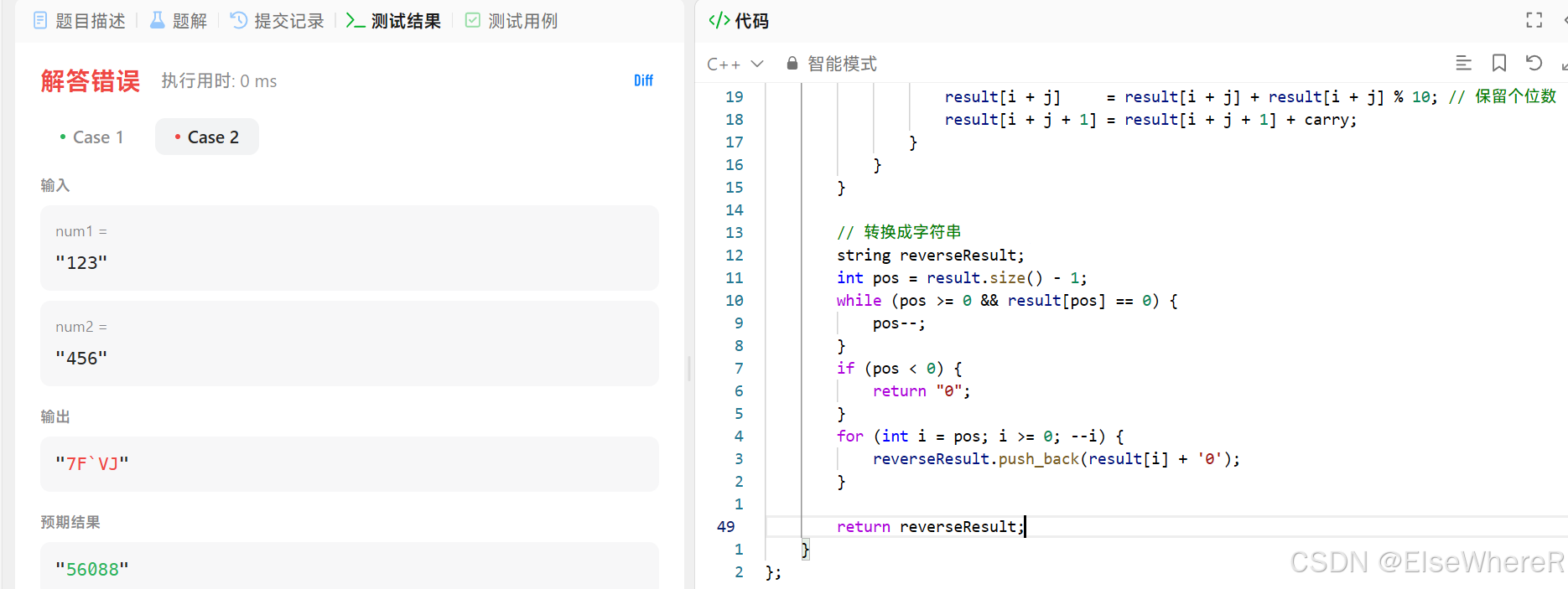 int digit2 = num2[j] - '0'; // 将字符转换为数字