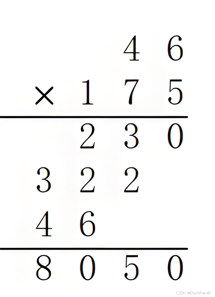 i = 0; j = 0; 3 * 8 = 24, vector[0] = 4, carry = 2, --> result = (4, 0【这里进2,下次计算这里得+2】, 0, 0);