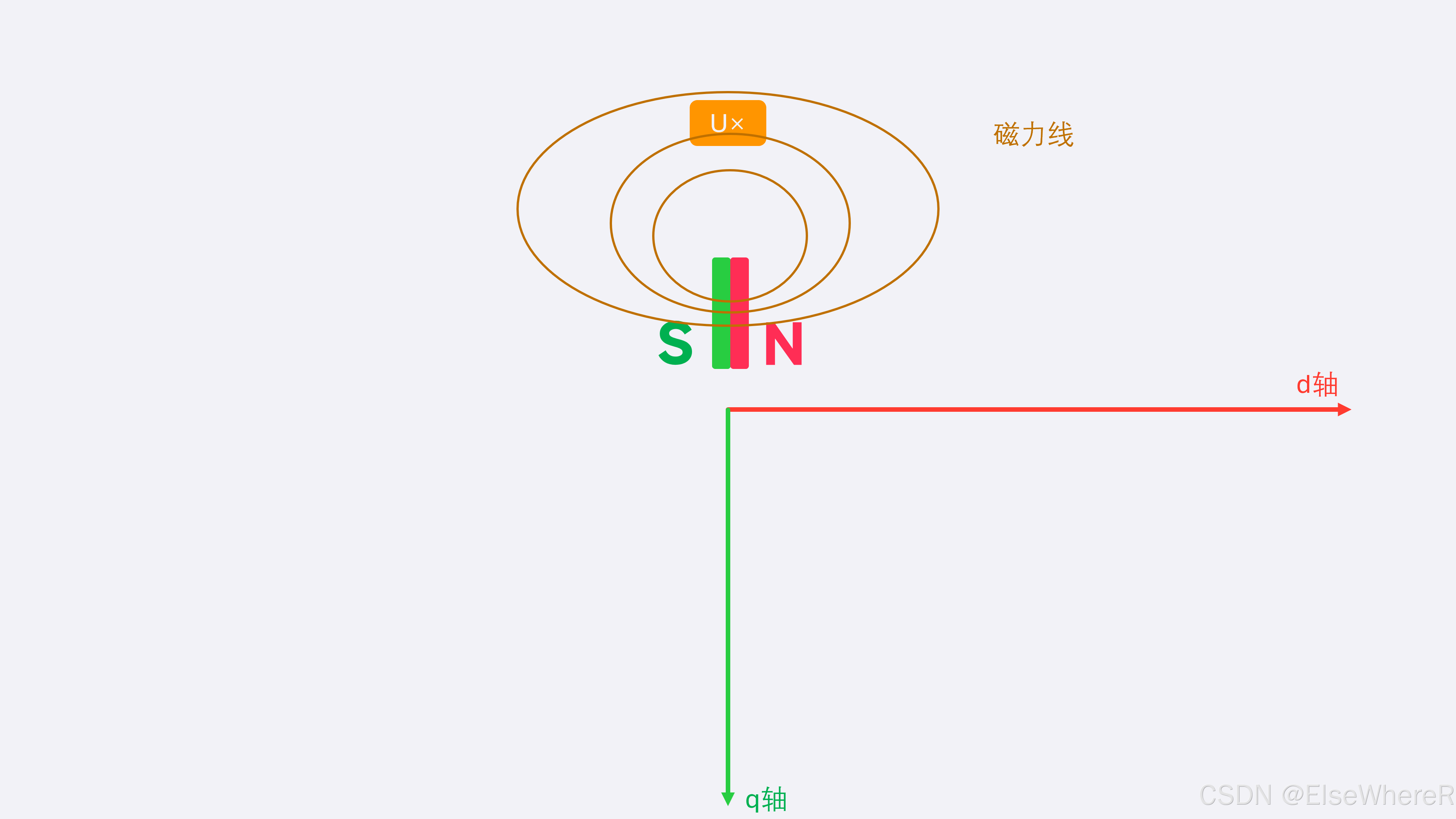 这个时候,让一个高频电压矢量在定子 αβ 坐标系里匀速旋转一圈,会产生电流,记录高频电流轨迹;由于 d、q 方向增量电感不同,电流轨迹是椭圆(而非圆),椭圆主轴方向给转子角度,主轴与副轴的电流幅值(或感抗)通过 I = V/(ωL) 关系反推出 Ld、Lq。这其中需要一些mathematics tricks,当然那,变化率一定会用到微积分,这个数学上的小把戏可以先不讲,这边只需要知道一句话,给定子施加电压,可以知道电流的轨迹,通过电流的椭圆形轨迹,可以知道Ld和Lq,椭圆的长轴,指向就是转子磁链方向。