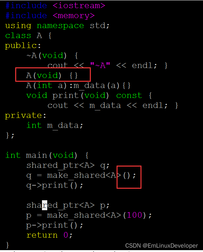 下面是先定义后初始化:当使用make_shared如果使用无参构造的时候使用:make_shared<type>()