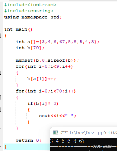for(int i=0;i<70;i++) //这个0和70是由数组中数的大小决定的, 若数组最大的数为1000, 将70换为1001