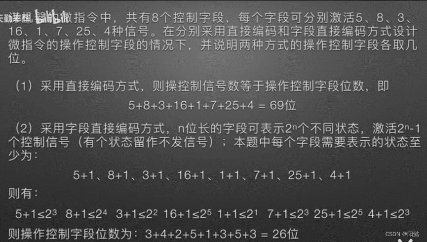 - 控制字段由微操作、微命令决定。注意编码方式。