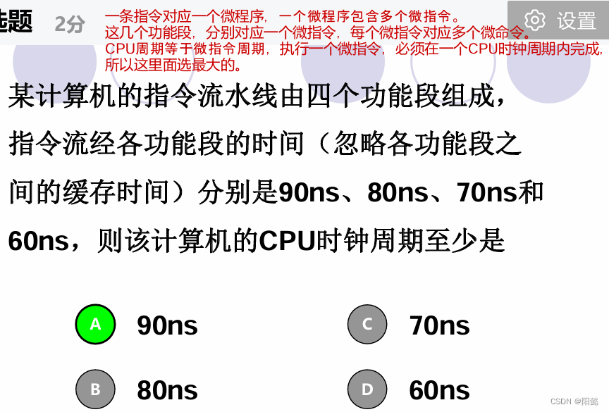 - 微指令周期=CPU周期=机器周期;微程序周期=指令周期。