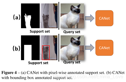 本文探索了一种基于weak annotations的support set进行学习的方式,即:使用bounding box而不是pixel-level的语义掩码作为标签。好处:减少标注的难度。