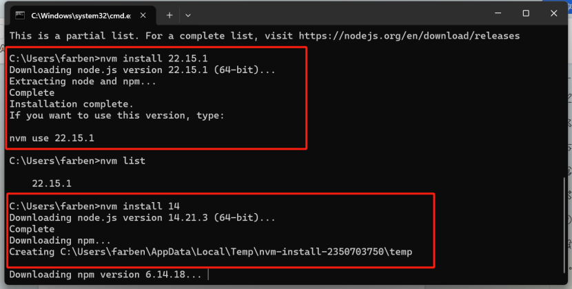 nvm install 22.15.1