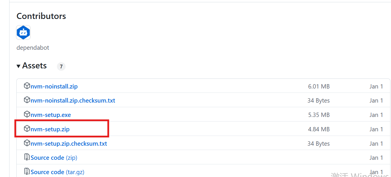 在地址中,找到assets中的nvm-setup.zip,下载到本地