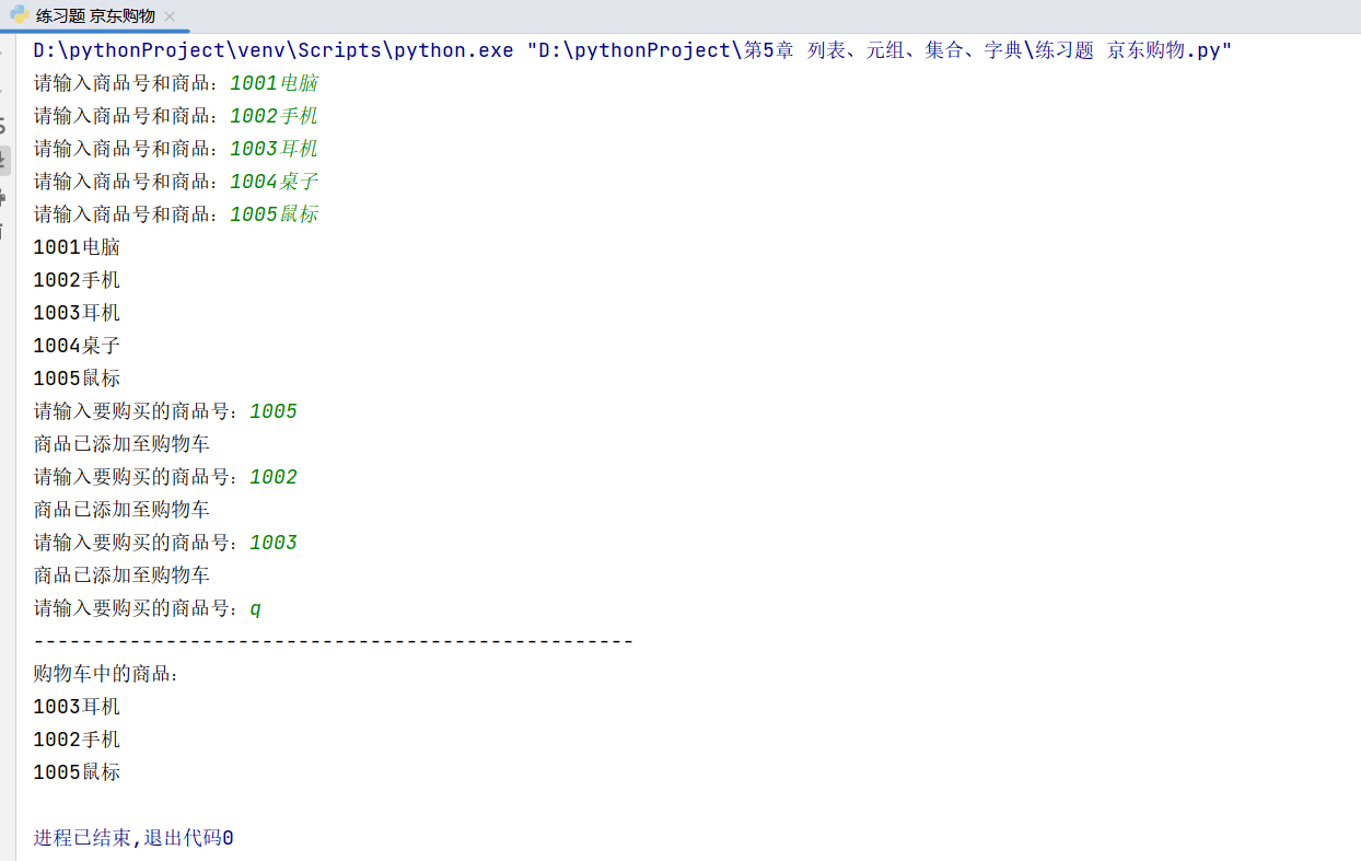 print('您购物车里选择的商品为:')