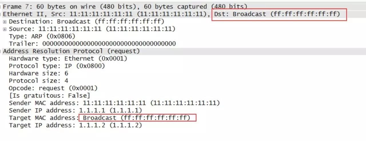 这样,交换机收到这个报文,看到目的mac地址是全F就进广播!