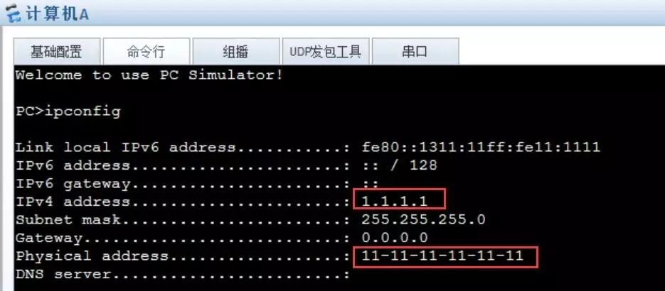 计算机A的信息: