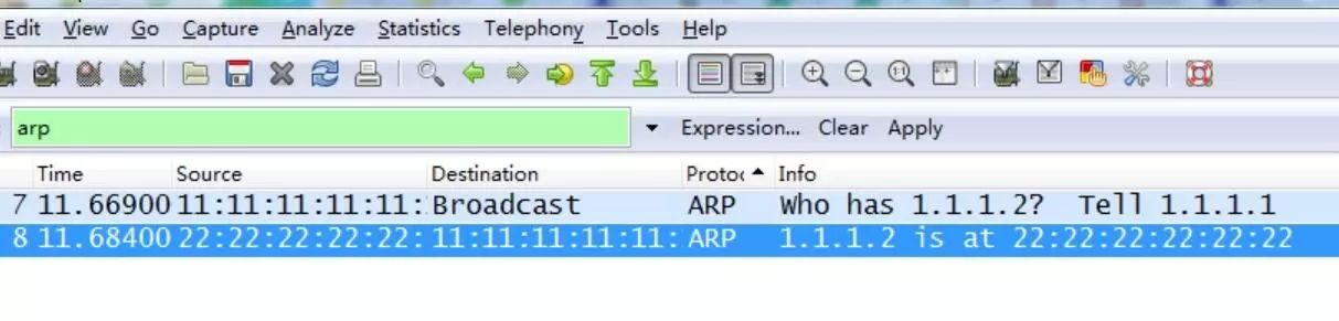 抓包就会发现抓到了2个ARP的报文:
