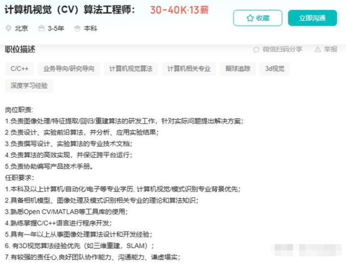 计算机视觉致力于让计算机理解和解释图像、视频中的内容,其应用范围极为广泛,涵盖安防监控、自动驾驶、医疗影像诊断、工业检测、智能零售等诸多领域。随着多模态大模型的兴起,计算机视觉与自然语言处理等领域的融合趋势愈发明显,如根据图像生成描述性文本、通过文本指令操控图像内容等创新应用不断涌现,为该领域带来了新的发展契机。当前,智能安防市场对实时、精准的目标检测与识别需求迫切;自动驾驶领域对车辆、行人、道路标识的高精度视觉感知要求不断提升,这都为计算机视觉工程师创造了大量的就业岗位和职业上升空间。