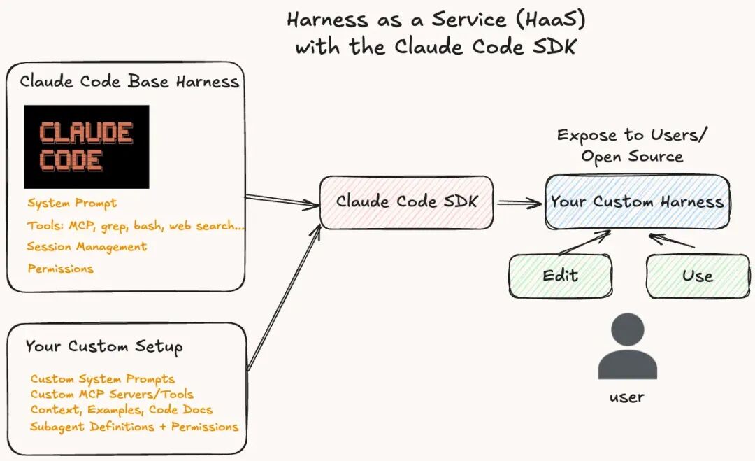 Chase特意提到这不是他发明的术语,而是来自Vtrivedy的文章(见末尾)。Vtrivedy把这叫做"HaaS"(Harness as a Service),认为AI开发的核心原语正在从LLM API转向Harness API: