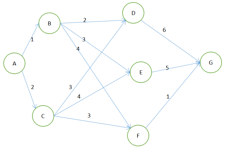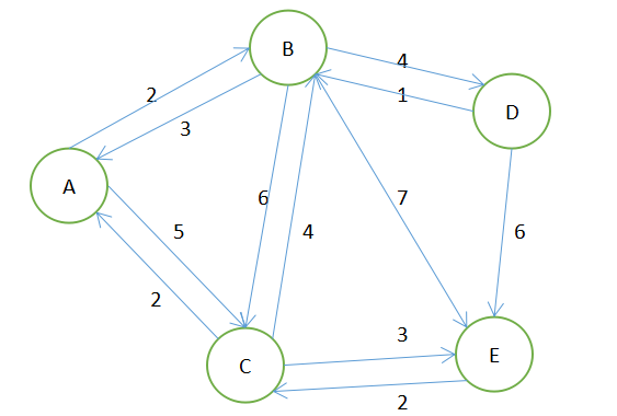动态规划的思想是将问题分解为子问题,将问题递推为子问题进行解决。以floyd算法为例。算法使用邻接矩阵来表示每个点之间的距离,如果没有连线,则代表无穷大。比如下面这个图: