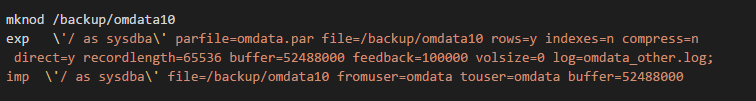 2) 为了加快exp和imp速度,这里我们利用了管道技术,脚本如下: