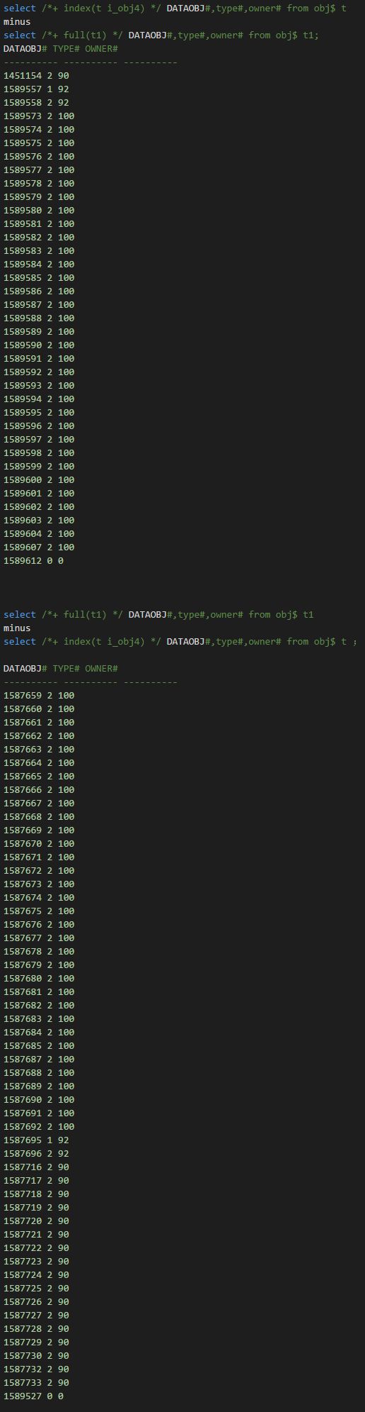 最开始我还尝试通过bbed修复了2个Block;最后发现依然难以处理这个ora-08102错误;后续通过上述sql比较发现居然有如此多的记录不一致。修改起来太过麻烦了。
