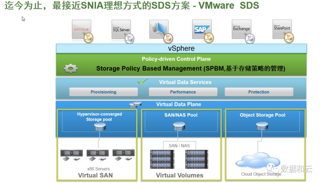 软件定义存储(SoftwareDefined Storage,简称SDS)的首次提出是在2012年8月VMworld大会上,此次大会同时提出了软件定义的数据中心(Software Defined Data Center,简称SDDC),SDS是SDDC的五大组成部分之一。