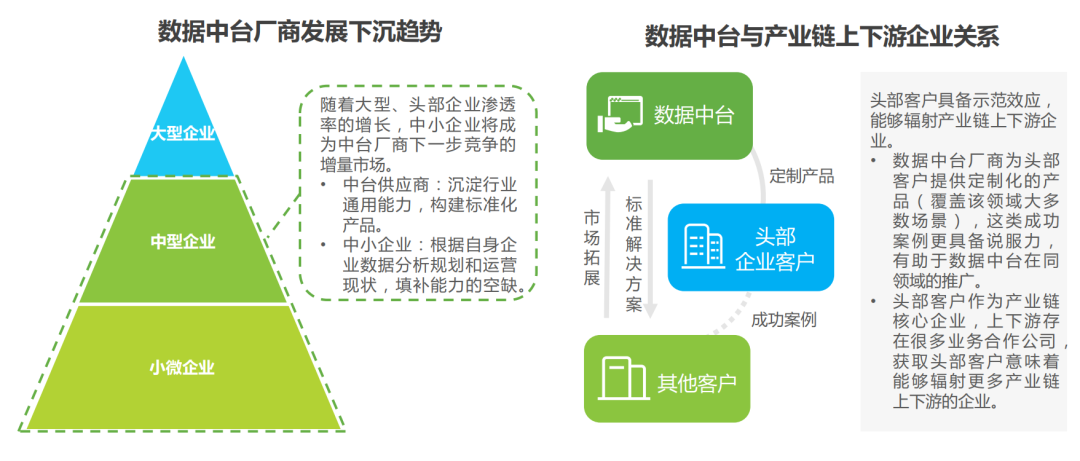 数据中台的核心在于共享和沉淀能力,随着数据中台在行业头部及领先企业逐渐落地,供应商经历了各类业务场景能力沉淀的过程。