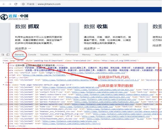 我们平时说的采集网站数据、数据抓取等,其实不是真正的采集数据,在我们的职业里这个最多算是正则表达式,网页源代码解析而已,谈不上爬虫采集技术难度,因为这种抓取主要是采集浏览器打开可以看到的数据,这个数据叫做html页面数据,比如您打开:www.jintancn.com这个网址,然后键盘按F12 ,可以直接看到这个网址的所有数据和源代码,这个网站主要是提供一些爬虫技术服务和定制,里面有些免费新工商数据,如果需要采集它数据,你可以写个正则匹配规则html标签,进行截取我们需要的字段信息即可。下面给大家总结一下采集类似这种工商、天眼、商标、专利、亚马逊、淘宝、app等普遍网站常用的几个方法,掌握这些访问几乎解决了90%的数据采集问题了。