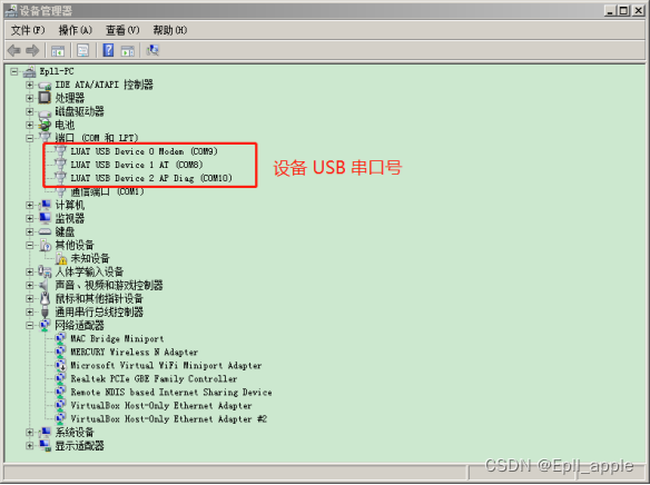 三、设备开机后,用USB数据线连接电脑,若驱动安装成功,则在“设备管理器”中会识别到USB串口号。音箱自带的USB线只能充电,不具备数据传输功能,插入后不会出现串口。必须使用能显示安卓手机磁盘的USB数据线。
