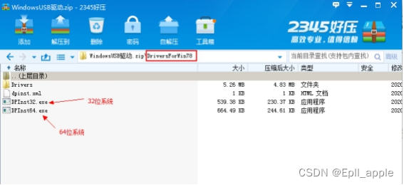 二、解压《WindowsUSB驱动.zip》文件,根据操作系统类型(支持win7、win8、win10系统)选择对应的USB驱动安装。“DriversForWin10”目录中为win10驱动,“DriversForWin78”目录为win7和win8系统的驱动