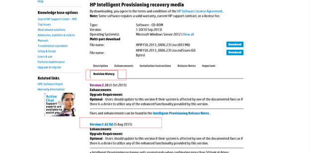 2. 打开红框的revision history选项卡找到 Version1.62b镜像。(Gen9 的IP为2.x,Gen8 为1.xx)