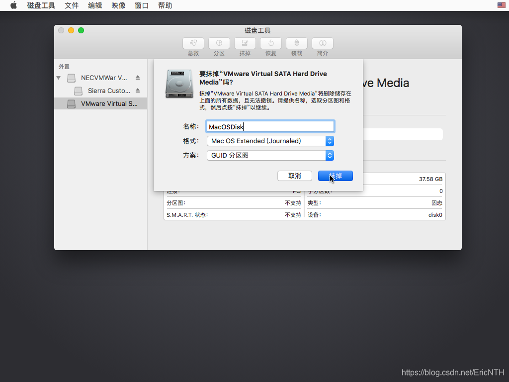 四 选择你的那个磁盘(不要选那个安装光盘),点击抹掉。