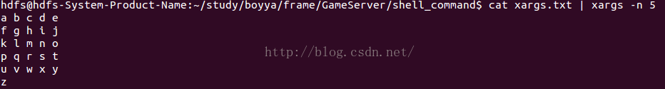 cat xargs.txt | xargs -n 5