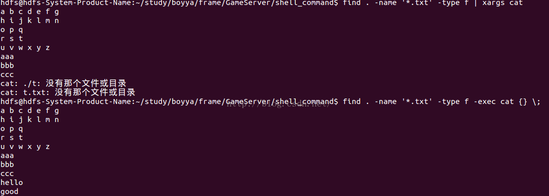 原因:默认情况下, find 每输出一个文件名, 后面都会接着输出一个换行符 ('\n'),因此我们看到的 find 的输出都是一行一行的,xargs 默认是以空白字符 (空格, TAB, 换行符) 来分割记录的, 因此文件名 ./t t.txt 被解释成了两个记录 ./t 和 t.txt, cat找不到这两个文件,所以报错,为了解决此类问题, 让 find 在打印出一个文件名之后接着输出一个 NULL 字符 ('') 而不是换行符, 然后再告诉 xargs 也用 NULL 字符来作为记录的分隔符,即 find -print0 和 xargs -0 ,这样就能处理特殊文件名了。