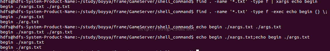 #exec一次传递一个参数,即执行:echo begin ./xargs.txt;echo begin ./args.txt -