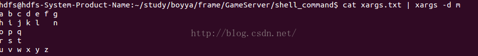 cat xargs.txt | xargs -d m
