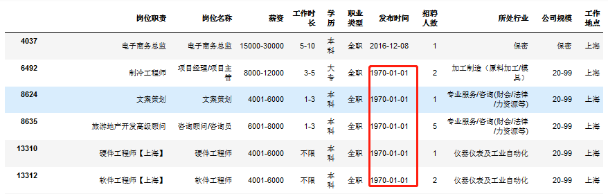 # 可以发现:发布时间异常最早发布时间:1970-01-01 ,最晚发布时间:2017-11-23