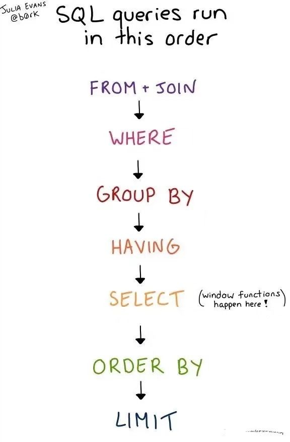 SQL提数,准确性是第一位的。准确性如何把握?关键在于你的理解需求能力、逻辑思维能力、执行原理掌握的程度。需求理解出错,从根上就是不可能提取到需要的数据。SQL执行原理中,我认为一定要把SQL子句的执行顺序搞清楚。