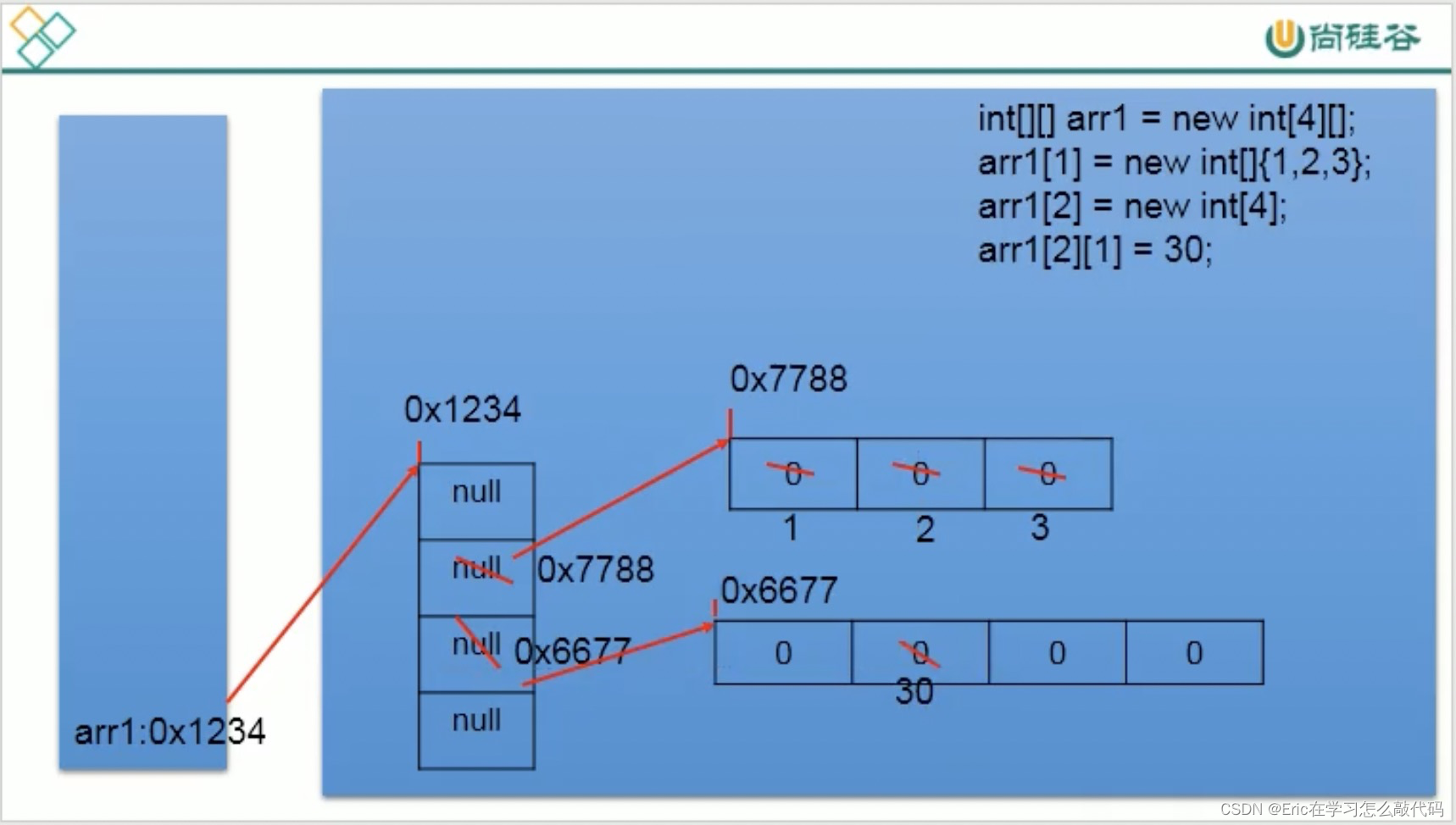 3、赋值过程中,给堆结构中的数组分配一个十六进制的首地址值,例如arr6:0x34ab、arr7:0x12ab