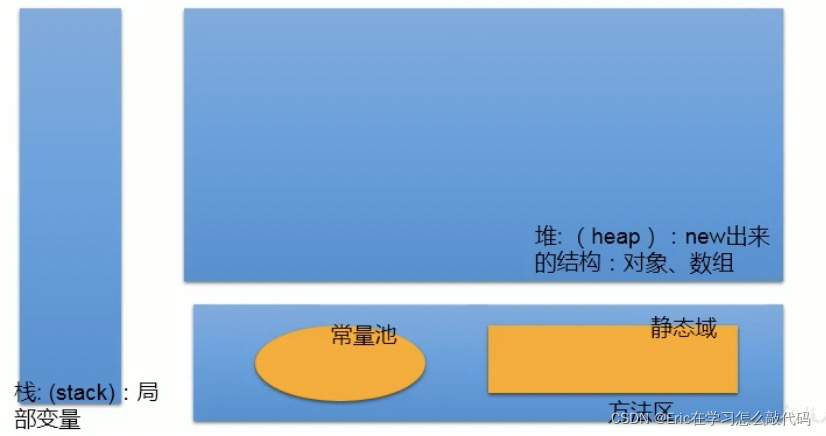1、栈(stack):主要存放「局部变量(方法中定义的变量都是局部变量,比如main方法)」