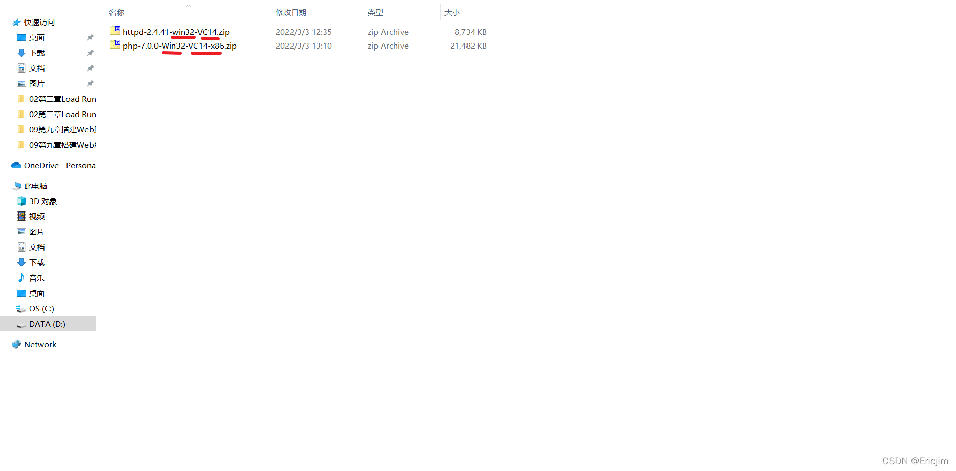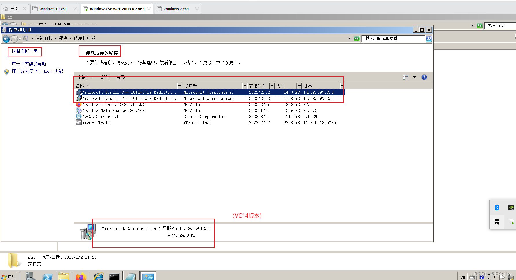 Apache、PHP官网下载,但是需要注意自己计算机的位数,我的Windows server2008为Win64位;而且分别要满足VC14-X86编辑器版本的要求,所以我选择了如下版本: