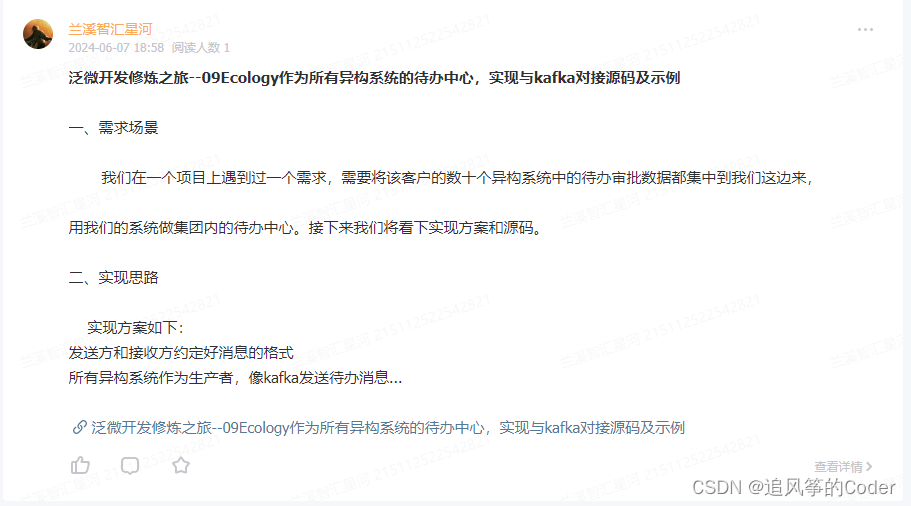 文章链接:泛微开发修炼之旅--09Ecology作为所有异构系统的待办中心,实现与kafka对接源码及示例