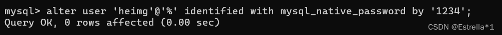 (3)修改用户密码:ALTER USER '用户名'@'主机名' IDENTIFIED WITH mysql_native_password BY '新密码';