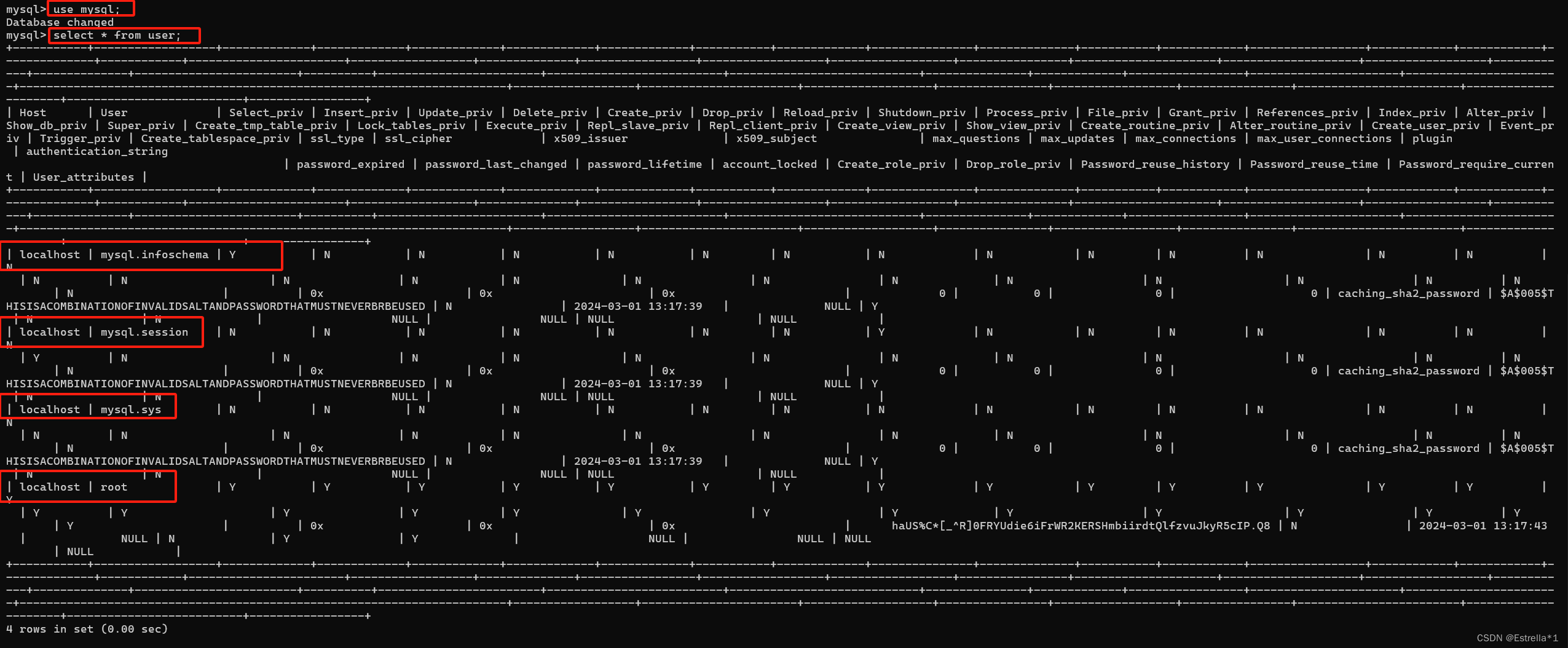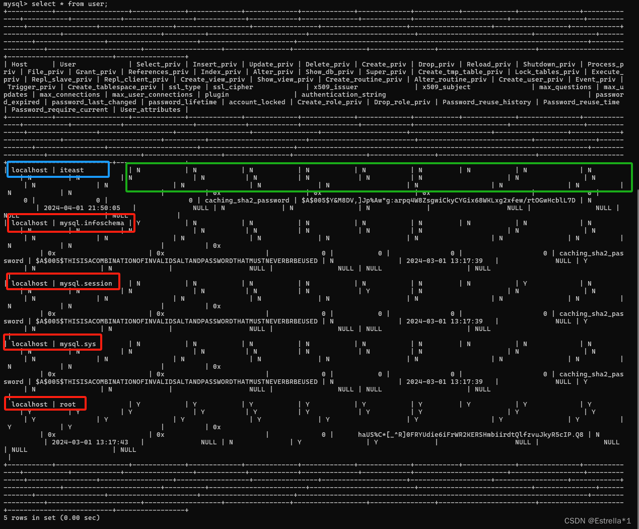 查看一下,可以看到创建的用户,但是全部是NO,没有权限
