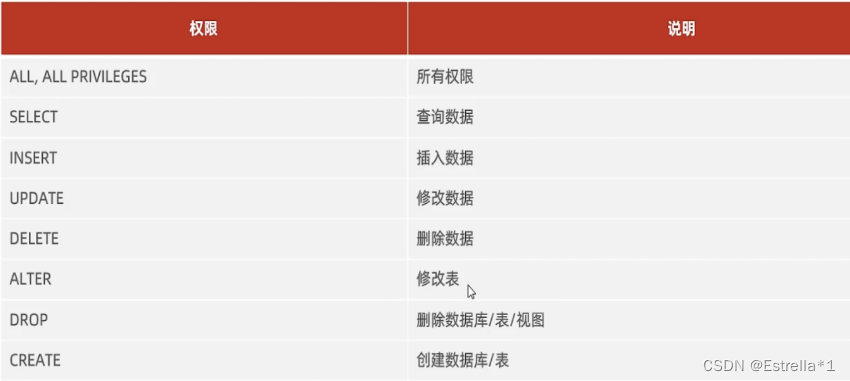 - DCL(Data Control Language):数据控制语言,用来创建数据库用户、控制数据库的访问权限、控制对数据的增删改查操作