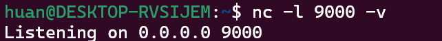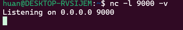 接下来我们先在攻击者使用nc命令运行一个TCP服务器,加上-l选项来监听9000端口