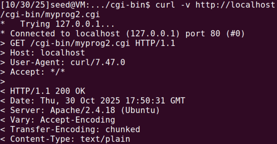 之后运行curl -v http://localhost/cgi-bin/myprog2.cgi